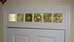 "I thought you'd like to see what we did with the bullseye glass that you made. It is a vertical sidelight, and it looks really sharp! Thank you for the glasswork--the effect is excellent, just how we imagined it in terms of appearance, dimension, style. Thank you for sending the color samples of your glass--it made it clear which direction we should take." - SF |